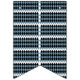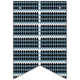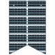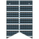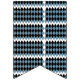 I den här konstruktionen visas ett upprepande mönster med en geometrisk utformning. Den består av raderna med rombussformade motiv, som växlar i svartvitt, där zigzaggande linjer skär genom mitten av varje rhombus. Mönster skapar en synlig och dynamisk effekt på grund av dess alternerande färg och upprepningen av geometriska former.