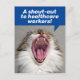 Ludd katt som ropar ut "Hälsar sjukvårdspersonal med en shoutout!" Shoutout betyder ett meddelande med gratulationer, stöd och uppskattning. Ett sött sätt att tacka sjukvårdspersonal för deras hängivenhet, hårt arbete och osjälviskhet. Du kan också infoga ett personligt meddelande på kortets baksida med den medföljande handskrivna teckensnittet i mörkbläck. Framsidan av kortet kan ändras till alla andra servicepersonal och första hjälpen-personer som vi är beroende av.