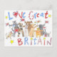 En roligt patriotisk vykort fullt av katter och hundar som älskar Underbara Storbritannien. Köp i stora sparor!