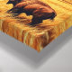 Ett vackert landskap med två bison som går genom en fält av högt, guldgräs. Himmel är en briljant blå med flytande vita moln, och ett avlägset bergsområde med toppar med snö kan ses i bakgrunden. Det övergripande intrycket är fred och lugn.