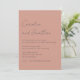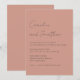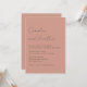Inbjudan dina kära till din speciella dag med dessa eleganter och minimalistiska bröllopsinbjudningar. Med en mjuk terracotta-bakgrund med en ren, modern layout och ett känsligt handskrivet skript ger dessa inbjudningar en varm och sofistikerad ton för firande. Perfekt för par, som kärlek är en contemporary men som ändå inte har någon tidsmässig utformning, lyfter de fram alla viktiga detaljer med enkelhet och stil. De här inbjudningarna är perfekta för att skapa ett vackert och minnesvärt första intryck av bröllopsdagen och finns som en hämtningsbar fil för direkt delning eller som professionellt tryckta kort för en polerad och varaktig keepé.