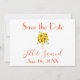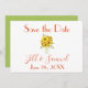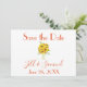 Ett vackert fullt av solblommor i vas, det här sparar datumet med en vit bakgrund. Texten är orange och baksidan är ljust grönt. Inbjudningsdesign: BröllopsbyRhoadie-Blommigt teckning: AMBillustrations http://www.etsy.com/shop/AMBillustrations/