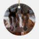 Ett prydnadsföremål med ett foto av två hästar mot bakgrund av vintern.