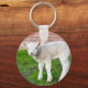 Ett vitt nyfött lamm som står i grönt gräs nyckelring