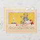 En liten ettårig flicka tillsammans med sin docka gläder sig åt sin födelsedagstårta. Enkel vykort för den nya baby i ditt liv. Perfekt för en snabb hälsning. Kolla in det matchande frimärket också. Alla föremål är återgjorda från designs som producerades för över 55 år sedan.
