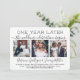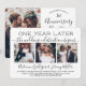 Om oväntade omständigheter har orsakat en försening av er bröllopsfest är den första årsdagen en perfekt möjlighet att fira ett år senare. Bjud in familj och vänner till en enkel elegant 1-årsfirande fest med denna stilrena moderna 4-foto collage-inbjudan. All text är enkel att anpassa, inklusive citatet som lyder "ett år senare börjar bröllopsfirandet". Anpassa tiden mellan vigseln och den faktiska festen, oavsett om det är bara några månader eller ett par år. Inkludera all information du önskar, såsom datum för äktenskap, planer på förnyade löften, detaljer om efterbröllopsfest, uppföljning av bröllopsplats, dresscode, rsvp, webbplats, etc. (TIP FÖR BILDPLACERING: Ett enkelt sätt att centrera en bild exakt som du vill är att beskära den innan du laddar upp den till Zazzle-webbplatsen.) Den moderna minimalistiska svart-vita designen har fyra bilder av det nygifta paret, trendig handskriven kalligrafi och chic skrivmaskins typografi. Oavsett om ni rymde, hade ett mindre minimony eller mikrobröllop, eller om er speciella dagsfirande måste planeras om på grund av en Covid-19-relaterad