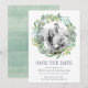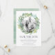 Vår Eucalyptus andedräkt sparar datumkortet ramar din favoritbild på förlovningen med en rund andedräkt av målat eukalyptus grenar och grönt löv i sage- och vår-grönt. Ett modernt och elegant val för vår eller sommar-bröllop. Anpassa med namn, bröllop-datum, plats och bröllop webbplats med hjälp av fält.