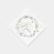 Baby Baptism/Christening Papper Napkins. Denna utformning illustrerar grönt löv och eukalyptus löv i vattenfärgen stil. Över löven - konetti lägger till ovansidan på Napkins (deras bilder kan avlägsnas). På utandningens ovansida finns en bild av Kor.