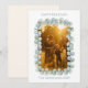 A modern and serene photo card framed by soft watercolor eucalyptus leaves and frosted winter berries. The cool blue-green tones create a calm and elegant Christmas aesthetic, perfect for sharing warm wishes and timeless family memories this holiday season.