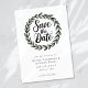 Vänner och familj i inbjudan för att spara datumet för bröllop med denna moderna utformning.