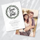 Vänner och familj i inbjudan för att spara datumet för bröllop med denna moderna utformning.