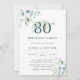 Denna 70:e födelsedagsfest inbjudan har färgade vattenfärgseukalyptus och grönt löv med botaniska gröntar och guld siffror.