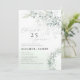 Den här inbjudan är en perfekt med elegans, modernitet och schicitet. Användan av botaniskt och sage water color ge är en naturlig, ekologisk känsla, medan den moderna typografin och designen inslag tillför en del sofistikering. Paletten i färg är fast föråldrad och skapar balans och harmoni. Den botaniska eucalyptusbilden tillför en aning grönt, som symboliserar tillväxt och förnyelse, skapar perfekten för årsdagen firande. På det hela taget är denna inbjudan en vacker representation av underskattad elegans, med bara högerna av modern luft och ekologisk charm. Det är säkert att du kan ange tonen för en minnesvärd och sofistikerad årsdag firande.Det är mycket enkelt att anpassa dig, med dina personuppgifter. Matchande objekt är tillgängliga.