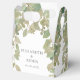 Bröllopet för snyggt med en mjuk eukalyptus löv-utformning i sage grönt och beige på en ren vit bakgrund. Anpassade med brudens namn och duschdatum är idealiskt för elegant och naturinspirerat firande. Perfekt för behandlingar, små presenter eller tack-för-tack-överraskningar för dina gäster.