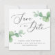 Meddela din speciella dag med det här eleganten-fotot Spara datumkortet med vattenfärgen eukalyptus löv på framsidan och utrymmet för ditt personliga foto på baksidan. Den nya gröna designen i dammig tonfärgspar i grönt är perfekt anpassad till den moderna kalligrafin och skapar tidslängd och snyggt. Perfekt för teman botaniska chic, trädgårdar eller elegant bröllop. Tillgängligt som både ett tryckt kort och en digital nedladdning.