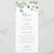 Modern bröllop-meny med vattenfärgade eukalyptus löv.