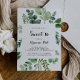 Denna eukalyptus kalligrafi söt 16 födelsedagsfest inbjudan är en perfekt för en strålande födelsedag. Utformningen har handmålade konstnärliga vackra eukalyptus grönt löv, som är sammansatt i vackra buketter för att försköna evenemanget.