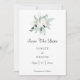 Det här eukalyptus bomullsvita moderna bröllop spara datum är perfekt för ditt moderna bröllop. Den här designen har eukalyptus grey med vita bomullsfläktar på vit och marin bakgrund och svart kalligrafi-skript i en modern klassisk traditionell layout. Jag ber er att ni kan ställa frågor till oss om utformningen.