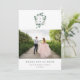 Detta enkla och minimalistiska bröllop tackkort har gröna vattenfärg eukalyptusblad som omger en vapensköld med era initialer i mitten, på en ren vit bakgrund. Lägg till ert favoritbröllopsfoto för att fullborda detta botaniska utseende.