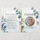Anpassa det här moderna begravningsprogrammet för elegant med eget foto och egen text för att skapa en speciell hyllning till ditt barn. Ett "In Loving Memory"-program med ett Eucalyptus vattencolor Foliage memorial-program. På framsidan finns ett foto av din älskade, deras namn, data, minnesplatsen och evenemangets datum. På insidan finns en obituär serviceordning, och på baksidan finns ett tackkort, och på butikens plats finns också andra konstruktioner som erbjuder botaniskt grönt med ro och löv design och glitter/gyllene accents och Eucalyptus foliage för att uppfylla alla krav.