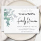 Planerar du en familjeåterförening? Den här blommigtens inbjudan är dekorerad med grönt-vattenfärgen eucalyptus och snyggt-skripttypografi. Anpassade enkelt med ditt namn och din information. All text är redigerbar och kan ändras i enlighet med detta för din typ av händelse. Ursprunglig vattenfärg © Michele Davies.