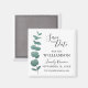 Berätta för din familj om datum för din nästa familjeåterförening med snyggten spara datum magneter. Den har en enkel vattenfärgseucalyptus sprig med elegant typografi. Enkelt anpassade. Använda Verktyg i Design om du vill ändra texten storlekt, stil eller färg. Eftersom vi skapar vår teckning kommer du inte att hitta just den här bilden från andra designers. Ursprunglig vattenfärg © Michele Davies.