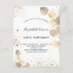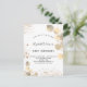 För en elegant 50:e (eller någon ålder) födelsedagsfest. En snyggt vit bakgrund som dekoreras med golden eucalyptus och faux guld glitter stoft. Personalisera och närmare uppgifter om namn och party. Svart färgad brev. Baksida: vit bakgrund, damm från glitter, vykortsdesign. Tips! Om du inte vill att det ska se ut som ett vykort klickar du på anpassa, går till baksidan och tar bort delaren och lägger till frimärke.
