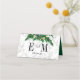 Stora Eucalyptus Foliage bouquet Rustic grönt löv och vita blommor blommigt bröllop designkort eller platskort bord eller . En anpassningsbar löv-design för anpassad stationär bröllop. Det finns utrymme för bordsnummer och gäst namn. En grönt som har texterats i färg ligger på baksidan med initialerna Bride and Grooms. Personlig bröllop stationär från Just Bra Design.