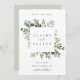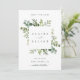 Den här inbjudan från bröllop spara datum innehåller färgade vattenfärger eukalyptus grey, grönt löv och kvadratram. Om du vill ha en mer avancerad anpassning av den här designen klickar du på länken Anpassa ytterligare. Matchande objekt är också tillgängliga.