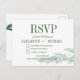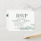 En enkel idé så att dina gäster enkelt kan svara på bröllopsinbjudningar med en snabb kryssa i rutan, antingen på kortet eller på din webbplats adress som finns på kortet. Ett bröllop OSA av blommigt med eukalyptus foliage. Grönt med vita blommor. Alla dessa uppgifter om extra som måste checkas ut kan anpassas på det här kortet. Informationen på baksidan ändras lätt till din. Det moderna skriptet ändras lätt för egen anpassningsbar. Det här vykortet för OSA är färdigt med en bröllop-svit-design från Just Bra Design.