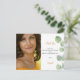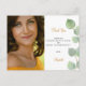 Ett modernt och elegant fototack. En chic vit bakgrund som dekorerats med eukalyptus greenery. Anpassa och lägg till ditt foto, ditt tackkort och namn. Bakåt: vykortsdesign. Tips! Om du inte vill att det ska se ut som ett vykort klickar du på anpassa, går till baksidan och tar bort delaren och lägger till frimärke.