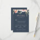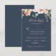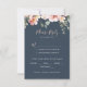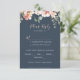 De här menykorten för eukalyptus-trädgården blommigt bröllop är perfekt för ett bröllop i Österrike. Utformningen har rosa, blommor, gul ros med eukalyptus löv i en mörk marin blå bakgrund.