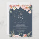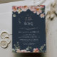 Denna inbjudan till förlovningsfesten "I Do" i blommigten för eukalyptus är perfekt för en modern förlovningsfest, en repetitionsmiddag, en dusch i par, efter party eller någon bröllop-händelse. Utformningen har rosa, blommor, gul ros med eukalyptus löv i en mörk marin blå bakgrund.