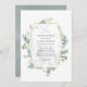 Vild skogar med eucalyptus herbarium Firande från Life-inbjudan med guld-geometrisk ram och silver-sage-vattenfärg tvättar omvänd.