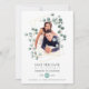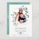 Trendig eucalyptus silver-dollarfotokort för bröllop spara datum med guld-geometriskt ram.