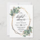 Detta är ett vackert bröllop inbjudningskort för möhippan med eukalyptus och guld geometrisk ram. En passande bakgrund med eukalyptus lövs mönster ingår.