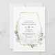 Vild skogar, eukalyptus herbarium förlovningsfest inbjudan med guld geometrisk ram designad för att snabbt och enkelt kunna anpassas till dina händelsespecifikationer.
