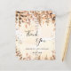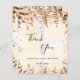 Ett tack för en 50-årsdag (eller vilken ålder som helst). En gyllene vattenfärgad bakgrund som dekoreras med guldeukalyptus och faux guld glitter-gnistor. På framsidan skriver stora svarta färgader skript och text: Tack, text, rubrik och datum. Tillbaka: Anpassa och lägg till tackkort och namn.