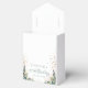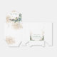 En vit bakgrund som dekoreras med eukalyptus grey och golden löv och faux guld glitter stoft. Anpassa och lägg till namn, ålder och datum. Med texten: Tack. Grönt.