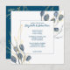 De här bröllopsinbjudningarna är perfektens väg till inbjudan alla dina vänner och din familj till din stora vår eller sommar stora firande. Har handmålad blå vattenfärg eucalyptus grenar med guld löv på framsidan. Baksidan är en fast blå bakgrund med guld blad. All blå typografi är anpassade för att passa alla dina behov i bröllopsdag firande.