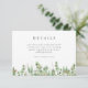 This simple and elegant details enclosure card features green watercolor and gold eucalyptus leaves and branches. Please note that the gold is simulated. The copy is fully editable. You can also change the font. It has a QR card on the back for the wedding website. This card has matching invitations, envelopes, & tags. Make all your wedding items coordinate!
