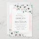 Modern chic vattenfärg Eucalyptus greenery och anemonfärgad blommigt på rosa, med ett pars monogram på rygg, elegant och snyggt, underbar inbjudan till rustiskt bröllop, botaniskt bröllop och ett bröllop på stranden i vår och sommar. Visa alla matchande delar i samlingen