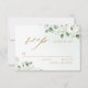 Modern chic vattenfärgsvit blommigt eucalyptus grey och guld färg text om dammig grönt, med trendigets OSA manus, elegant och snyggt, underbar OSA kort för rustiskt bröllop, botaniskt bröllop och badbröllop på strand. Visa alla matchande delar i samlingen