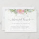 Vacker inbjudan till repetitionsmiddag med rosa-blommigt-vattenfärgen eukalyptus och guld löv. Valet av perfekt för vår och sommar-bröllop.