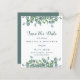 Save The Date! Meddela dina bröllop till vänner och familj med dessa budgetära, men moderna vita och eukalyptus sparar datumkorten. Dessa inbjudningskort för budgetbröllop har ett kuvertalternativ. Anpassa med namn, bröllop datum, plats. Lägg till annan information på baksidan. Dessa unika gröna sparor i bröllop kommer att ge ett bestående intryck, era gäster kommer att spara datumet! COPYRIGHT © 2020 Judy Burrows, Black Hund Art - Med alla Höger reserverade. Budgetera Bröllop Eucalyptus Greenery spara datum