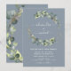 Eucalyptus Greenery Dusty Blue Elegant bröllop Inbjudningar
