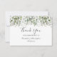 Eucalyptus Greenery Watercolor Elegant bröllop tackar dig kort. Du kan redigera alla tre linjerna text. Baksidan lämnas tom för ditt eget personliga meddelande till dina gäster.