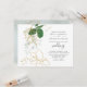 Modern botanisk bröllopsinbjudan med guld foil löv och eukalyptus grönenery foliage med modernt manuskript, handskrivet och populär typografi på vit bakgrund