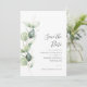 Fånga den vackra kärlek-historien med våra anpassningsbar Eucalyptus Bröllop spara datum-kort. Med en vattenfärgen eukalyptus löv gränser du personligen på ena sidan och skapar en elegant och ett naturligt meddelande som kommer att locka dina gäster. Lägg enkelt till namn, datum och plats för bröllop till den här tidtabellslösa designen, ange perfekten för din speciella dag och se till att dina nära och kära markerar sina kalendrar för ditt oförglömliga firande.