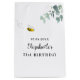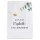 En vit chic bakgrund. Dekorerad med vattenfärgade eukalyptus greenery, löv och ett sött, lycklig-leende bi. Anpassa och lägg till ett namn. Namn är skrivet med ett modernt handskript i stil. Perfekt för presentförpackning eller party favors